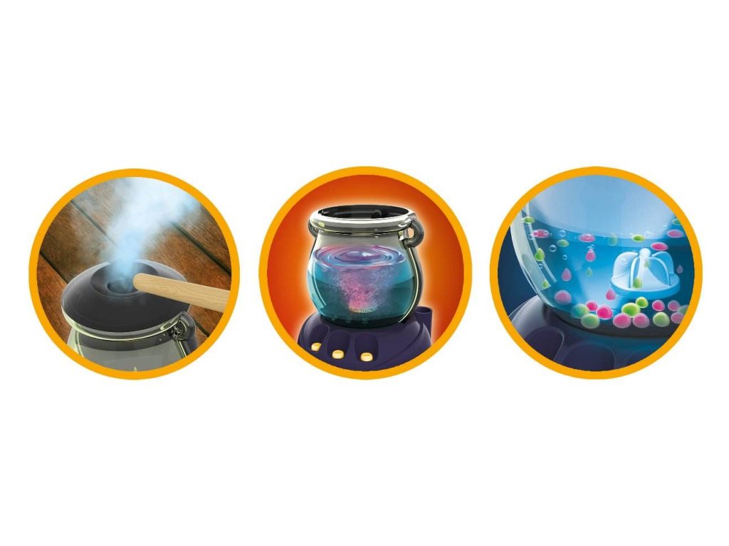 Kromě čarodějova kotlíku v sadě najdete také další příslušentsví, bezpečných chemikálií a také ochranné brýle. Dále sada obsahuje podrobný obrázkový návod s českým překladem na 30 zajímavých pokusů. K realizaci některých pokusů budete potřebovat navíc předměty a kuchyňské ingredience, které se běžně nacházejí v každé domácnosti.