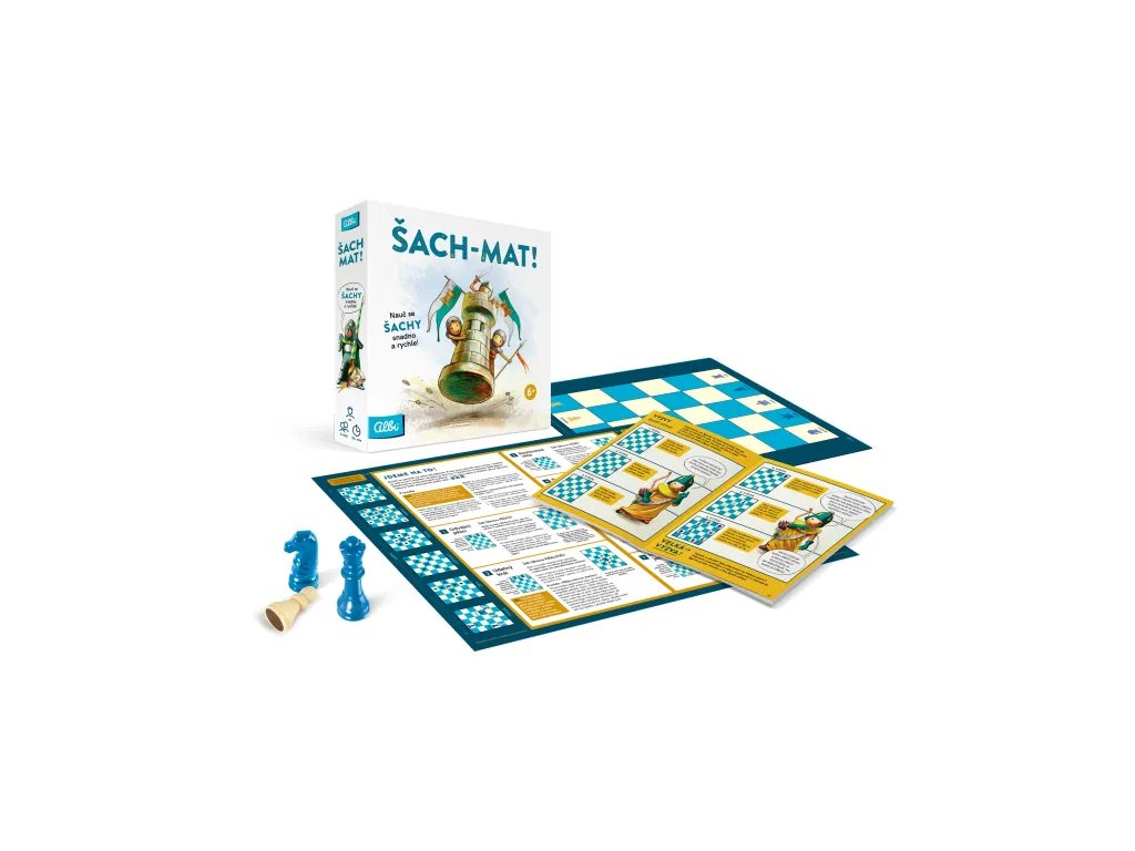 Hra Šach Mat obsahuje: oboustrannou herní desku, edukativní podložku pod šachovnici, 2 sady hracích figurek, výukovou brožuru, list zajímavostí ze světa šachů.