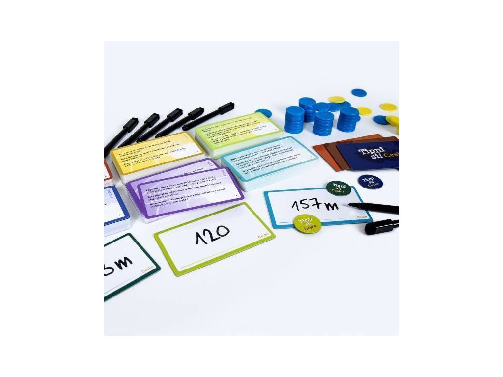Hra Tipni si Česko obsahuje: 396 karet s otázkami, 6 mazatelných destiček, 6 fixů s mazátkem, 80 plastových bodovacích žetonů, 6 barevných hráčských žetonů a pravidla.