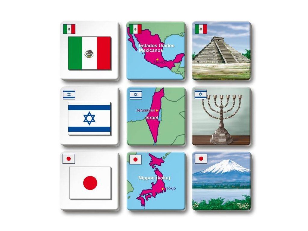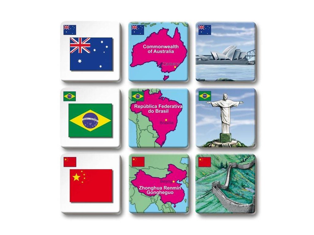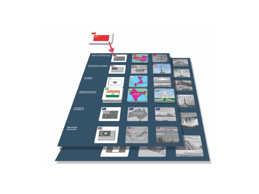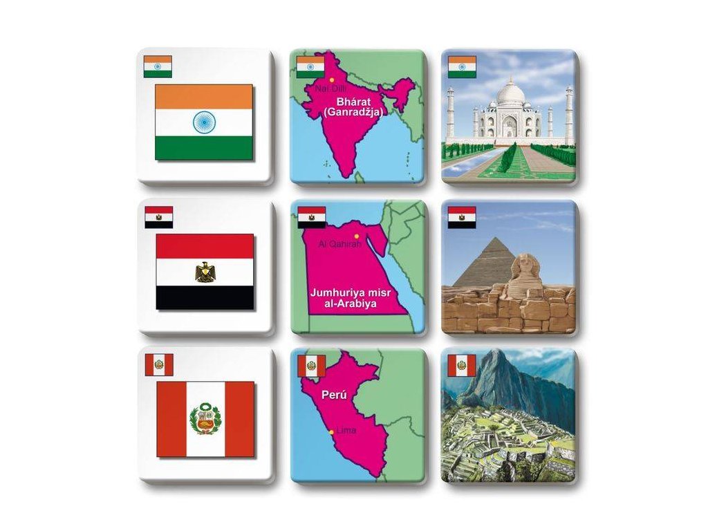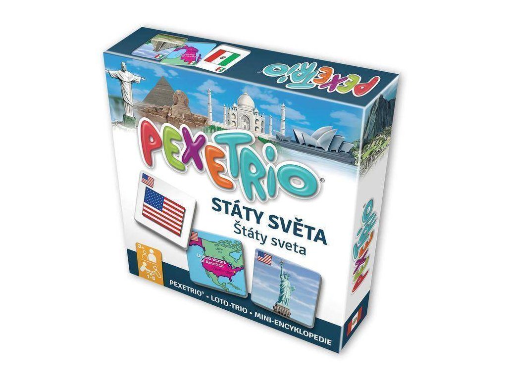 Pexetrio STÁTY SVĚTA je didaktická a zábavná hra, ve které se naučíte poznat vlajky, mapky a stavební památky stejného státu.