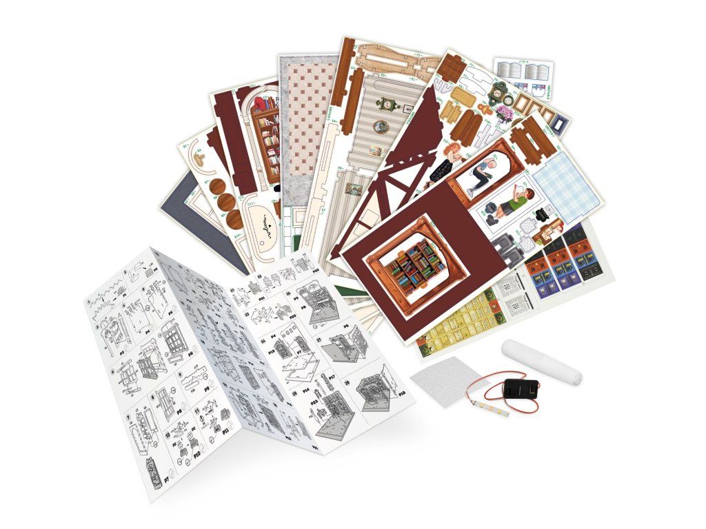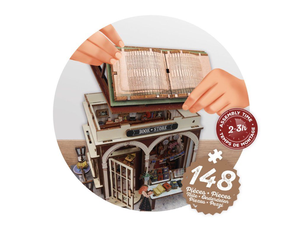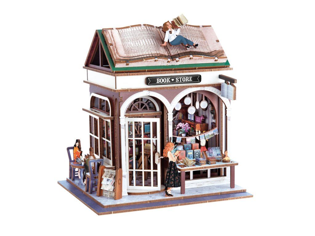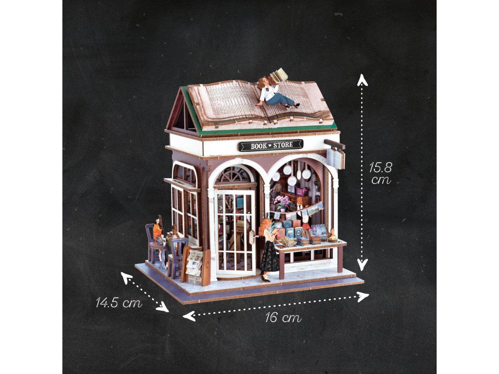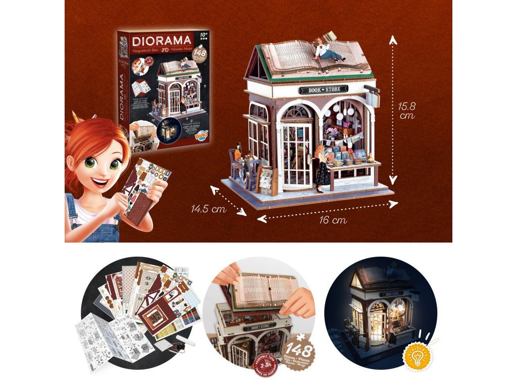 Populární série dřevěných stavebnic DIORAMA 3D s LED osvětlením. Sestavte si vlastní miniaturní knihkupectví z více než 148 dílků s barevným potiskem.