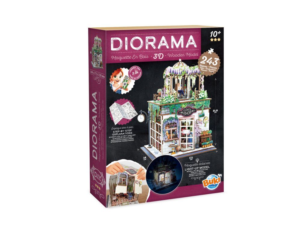 BUKI DIORAMA KVĚTINÁŘSTVÍ - dřevěná 3D stavebnice s LED osvětlením