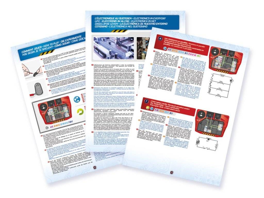 Stavebnice obsahuje celkem 21 komponent a 50 popsaných elektronických obvodů.