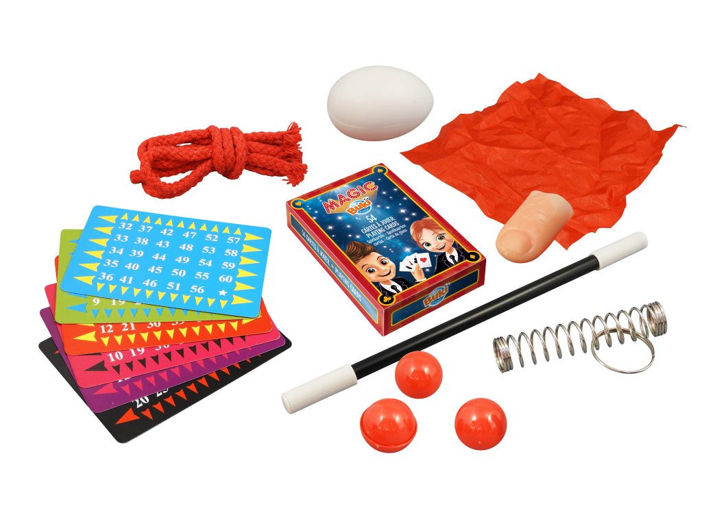 Kouzelnická sada je určená dětem od přibližně 7 let nabízí příslušenství a postupy speciálních triků a kouzelnických efektů k naučení a vytvoření malé kouzelnické show.