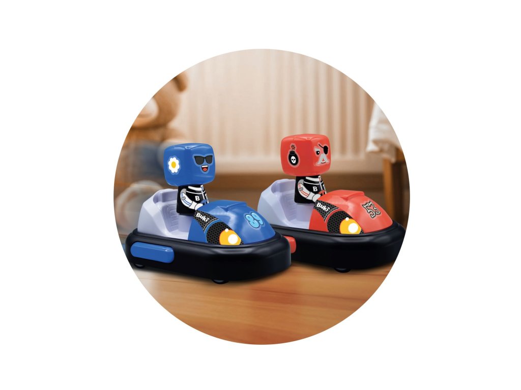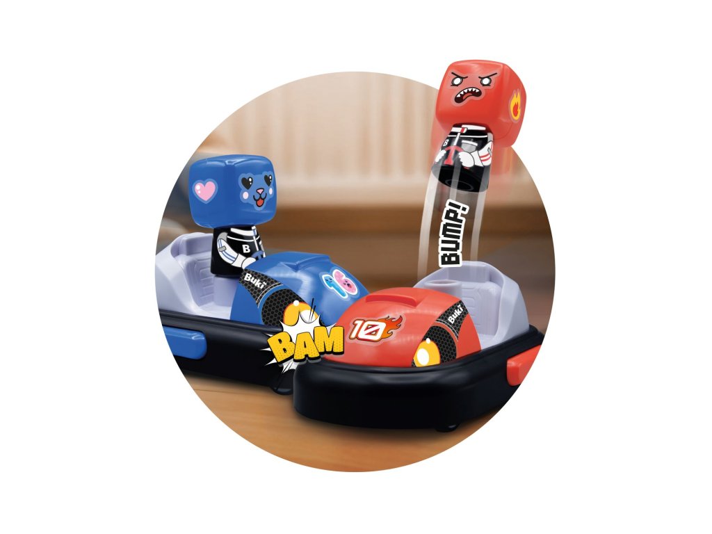 Závoďte nebo soupeřte s kamarádem v sestavené závodní dráze nebo aréně s miniautíčky. Po nárazu do soupeře vyskočí jeho figurka z minikáry.