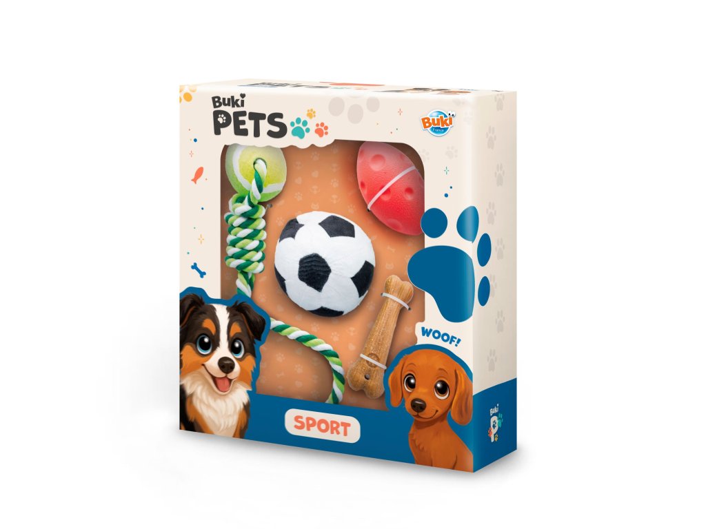 Sada čtyř zábavných hraček se sportovní tematikou pro vašeho mazlíčka.
