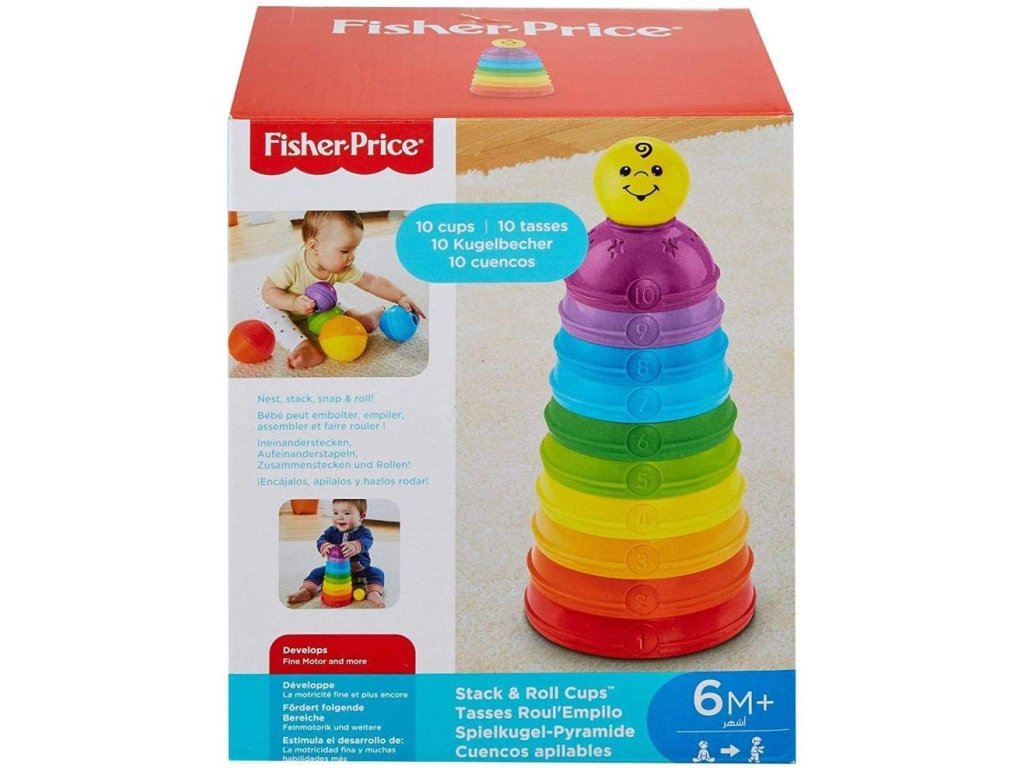 Tato obměna klasické stohovací hračky od Fisher-Price® nabízí spoustu možností, jak si hrát! Děťátko může zakulacené misky stavět do výšky na sebe, vkládat je do sebe či pomocí tvarovaných detailů poznávat čísla i barvy. Z podobně velkých misek se dají poskládat koule, které můžete stavět na sebe. Sada obsahuje rolničku, kterou lze jenom tak třást, nebo ji můžete vložit do jedné z koulí či položit na vrchol věže z misek. Spojováním misek dokáže dítě vytvářet dokonce abstraktní tvary! Možnosti jsou téměř nekonečné.