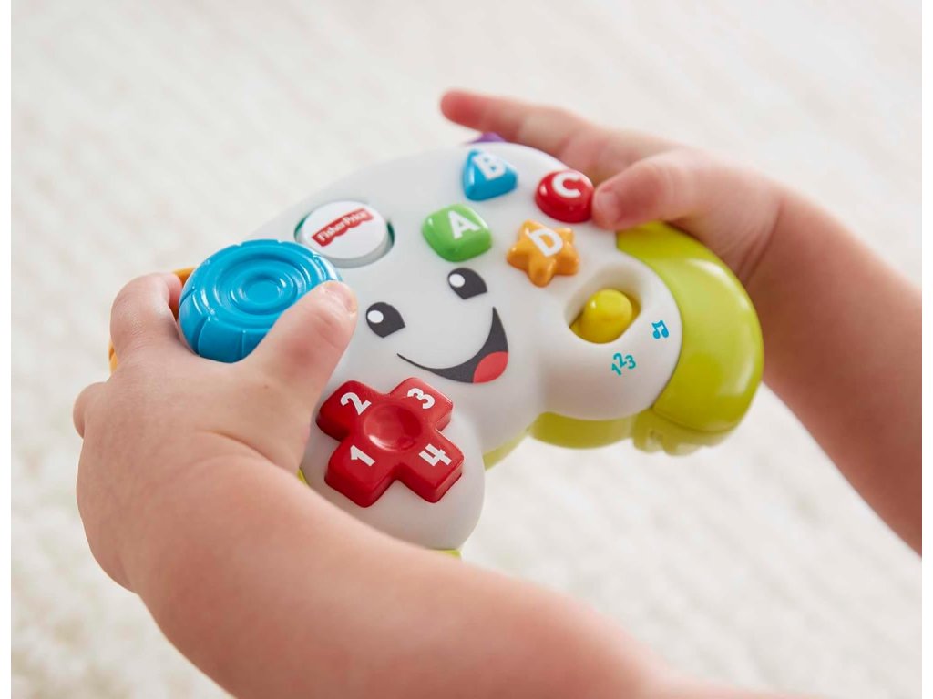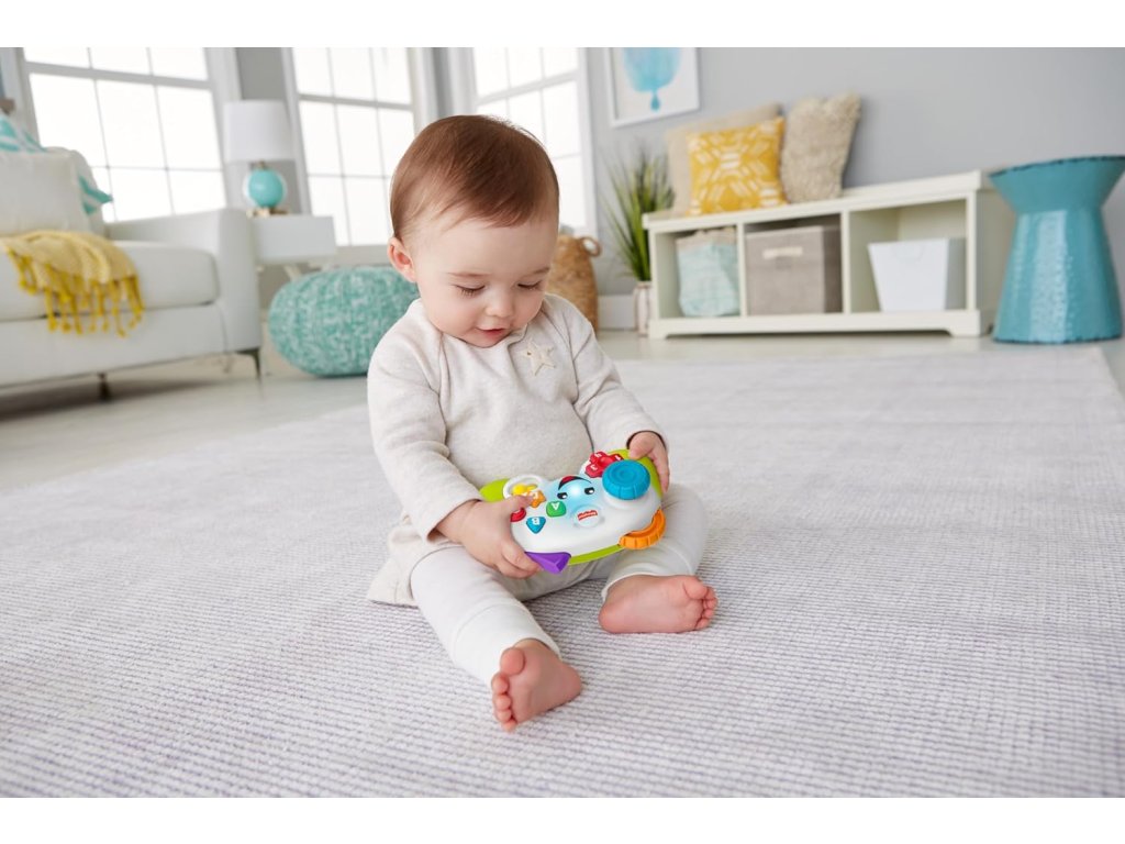 Miminka a batolata se mohou zapojit do herní zábavy s touto veselou hračkou od Fisher-Price®. Herní ovladač nabízí dva herní režimy, zábavné praktické aktivity a úžasné písničky a fráze, které seznamují s čísly, tvary, barvami a dalšími prvky, díky nimž si vaše děťátko bude hrát a učit se. Realistický design ovladače obsahuje pohyblivý joystick a tlačítka ABCD a čísla, jejichž stisknutím aktivujete světla, hudbu a zvuky.