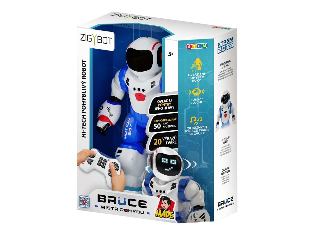 XTREM BOTS Bruce je interaktivní vzdělávací robot určený dětem, který kombinuje zábavu a učení prostřednictvím programování, pohybu a výrazu. Jeho cílem je podpořit rozvoj logického myšlení, kreativity a technického zájmu u mladších uživatelů.