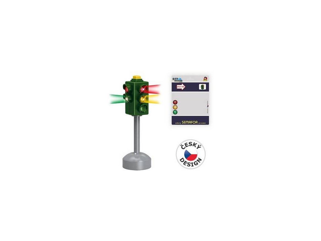 Funkční semafor se střídáním barev. Vhodné pro hraní s autíčky a modelování silničních situací.