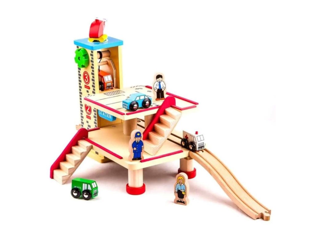 Garáž s výtahem, která zajistí hladké nadzemní parkování v centru velkých měst, kde by jinak auta zabírala velká parkoviště u obchodních, plaveckých, zábavních či sportovních center. Obsahuje: 4 auta, helikopteru a 3 figurky.