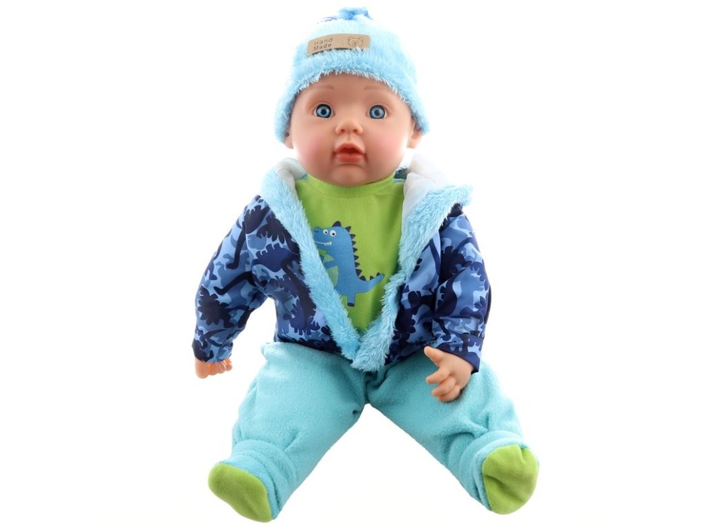 Miminko velké 50cm - kluk - modrá bunda, dino
