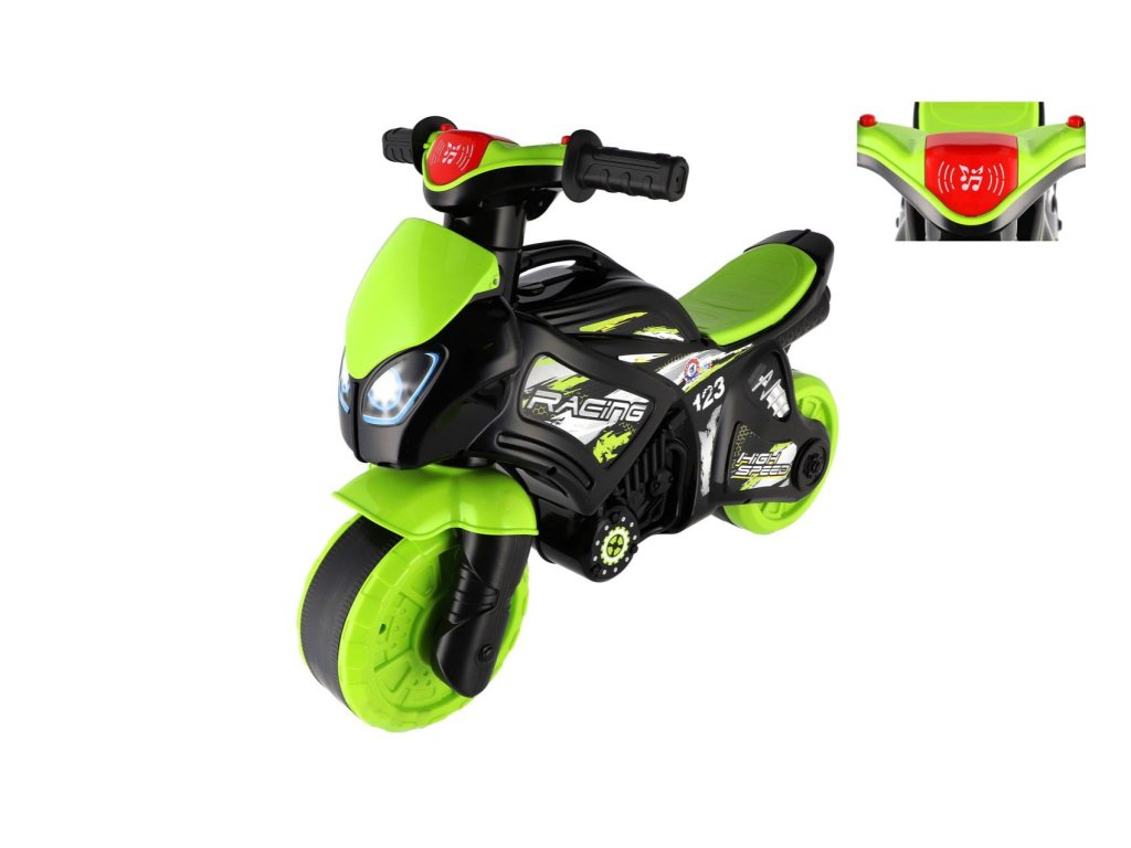 Odrážedlo motorka zeleno-černá se světlem a zvukem 36x53x74cm