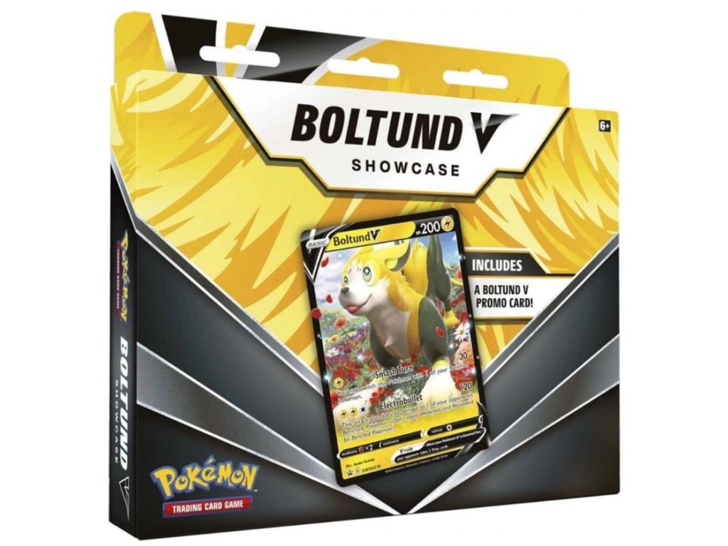 Pokémon Boltund V Showcase Box je dárkový set karetní hry Pokémon, který umožňuje snadno získat kartu silného bleskového Pokémona Boltund V. V balení jsou 3 doplňkové Booster balíčky a kód do online hry. Karta Boltund je unikátní a nikde jinde se zatím neobjevila a hodí se do všech bleskových balíčků.