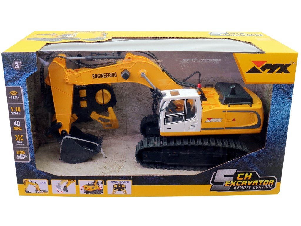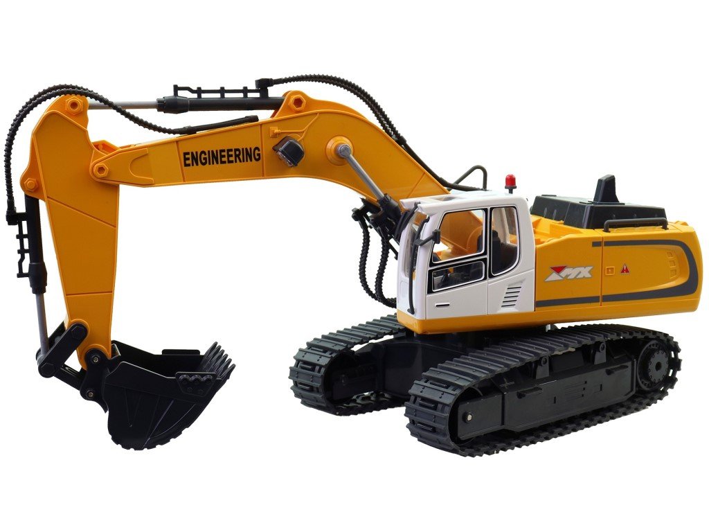 Bagr na dálkové ovládání je ideální pro každého malého stavitele a milovníka všech druhů stavebních strojů. 5-kanálový dálkový ovladač umožňuje ovládání pojezdu bagru, otáčení a ovládání ramena a lžíce.