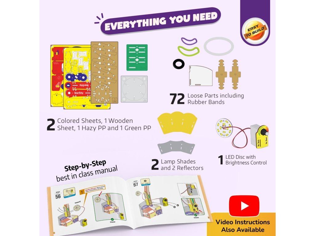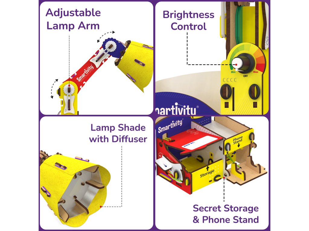 Smartivity Stolní LED lampa je kreativní stavebnice, která dětem umožní sestavit vlastní funkční stolní lampu. S využitím mechaniky, optiky a jednoduché elektroniky si dítě krok za krokem postaví lampu, která opravdu svítí – navíc bez potřeby pájení a s maximální bezpečností. Ideální pro rozvoj technického myšlení, trpělivosti a jemné motoriky.