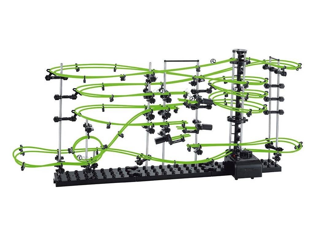 SpaceRail je stavebnice, která chytne a nepustí. SpaceRail je zcela jedinečná a konstrukčně dokonalá stavebnice skrývající neuvěřitelné možnosti zábavy. Stanete se konstruktérem, který bude mít za úkol postavit propracovaný systém drah, kde k dispozici budete mít několik metrů drah, ve kterých budou svištět kuličky. Při stavění využijete poznatky z mechaniky, fyziky, konstrukcí, budete rozvíjet jemnou motoriku rukou. Úžasná zábava pro celou rodinu, která neomrzí, Spacerail vás zabaví na celé týdny, měsíce. Skvělá podívaná, která se jen tak nevidí, současně může být na drahách 3 i více kuliček. Dráha ve tmě svítí efektivní zlenenou barvou!
