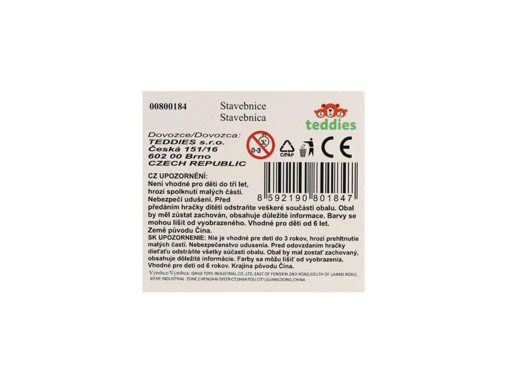 | Upozornění 1: | Není určeno dětem do 36 měsíců. Obsahuje malé části a hrozí vdechnutí a udušení! |