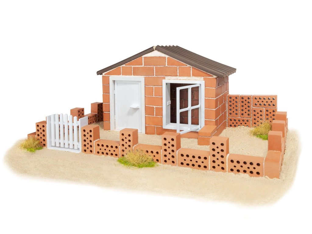 Stavebnice obsahuje : stavební návod, maltu, cihličky, hladítko, misku, podložku