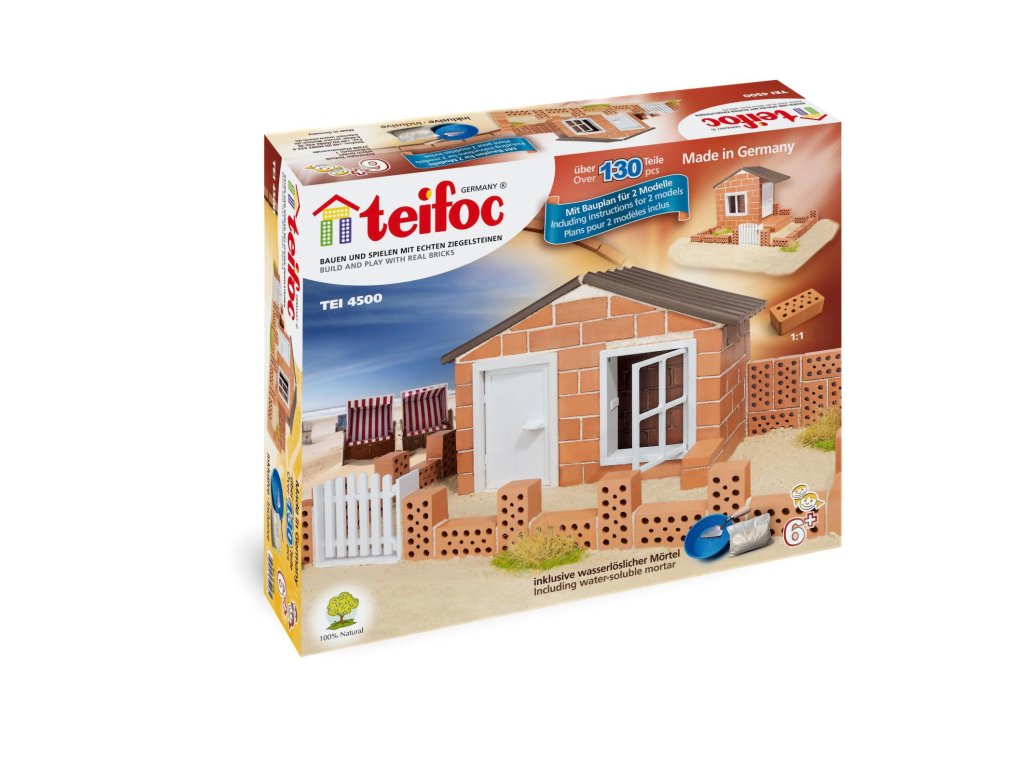 Stavebnice Teifoc je jedinečný systém sestavování a hraní, který využívá skutečné opakovaně použitelné cihly k vytvoření zábavných a propracovaných staveb a výtvorů. Cihly jsou vyrobeny z pálené hlíny a jsou zcela bezpečné pro dětskou zábavu. Každá sada Teifoc obsahuje jeden nebo více stavebních plánů, ale můžete se nechat inspirovat svou fantazií. Malta je směs písku a kukuřice. Chcete-li vytvořit nový model, jednoduše namočte stávající stavbu do vody, vysušte cihly a můžete znovu stavět. Je to velmi snadné.