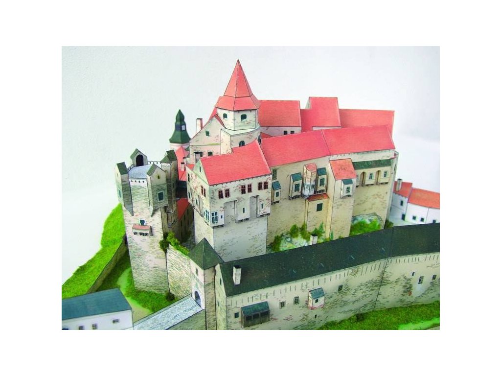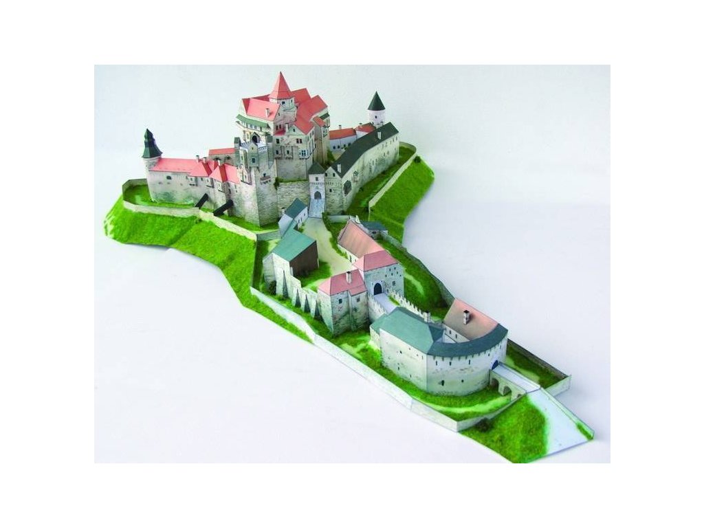 Na jednom ze skalnatých ostrohů Českomoravské vysočiny, nad řekou Svratkou a jejími přítoky, stojí nad městečkem Nedvědicí jeden z našich nejzachovalejších a nejkrásnějších hradů - Pernštejn. Tneto vám nyní přinášíme v podobě vystřihovánky.Hrad se zachoval dodnes ve své neporušené goticko-renesanční podobě tak, jak jej dostavěli v 1. polovině 16. stol. Pernštejnové, tehdy nejbohatší a nejmocnější panský rod Českého království. Počátky hradu lze datovat do 13. století (patrně mezi léty 1270-85). Stavitele hradu neznáme.Na zařazení mezi papírové modely jsme tento hrad nezvolili náhodně. Protože je to jeden z nejznámějších a také nejhezčích hradů na Moravě, bylo celkem logické, že dříve nebo později dojde i na vydání modelu tohoto hradu v podobě vystřihovánky.Jelikož se nám tentokrát díky spolupráci s Památkovým ústavem v Brně a kastelánem Pernštejna podařilo sehnat dokonalou dokumentaci a množství fotografií, je výsledek vystřihovánky velice věrný, jak po stránce konstrukční, tak po stránce malby.Publikace obsahuje: základový plán s vytištěnými plochami pro nalepení jednotlivých dílů budovy, podrobný psaný návod včetně několika návodových obrázků, popis historie (česky, německy, anglicky) a fotografie sestaveného modelu na zadní straně vystřihovánky.Návod na sestavení je u vystřihovánky v češtině, němčině a angličtině.